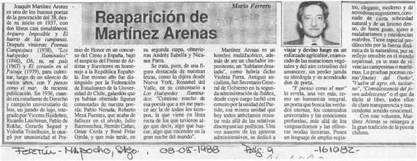 Reaparición de Martínez Arenas [artículo] Mario Ferrero.
