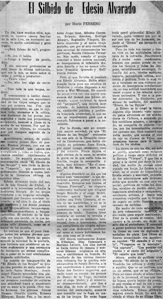 El Silbido de Edesio Alvarado [artículo] Mario Ferrero.