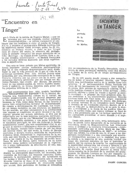 "Encuentro en Tánger" [artículo] Jaime Concha.