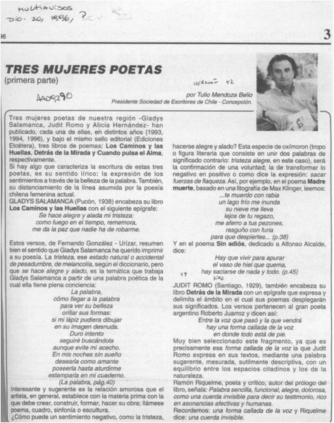 Tres mujeres poetas [artículo] Tulio Mendoza Belio.
