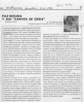 Paz Molina y sus "Cantos de ciega" [artículo] Tulio Mendoza Belio.