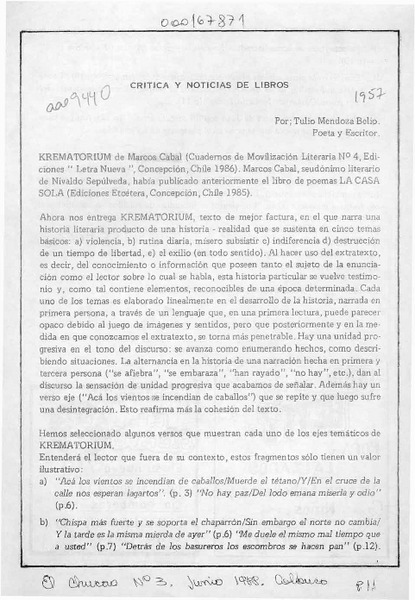 Crítica y noticias de libros [artículo] Tulio Mendoza Belio.