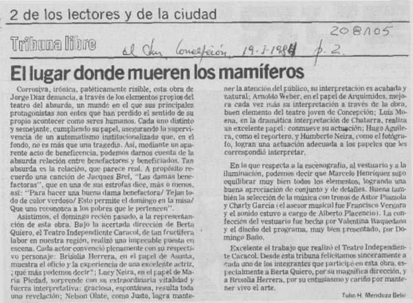 "El lugar donde mueren los mamíferos" [artículo] Tulio H. Mendoza Belio.