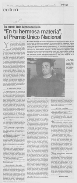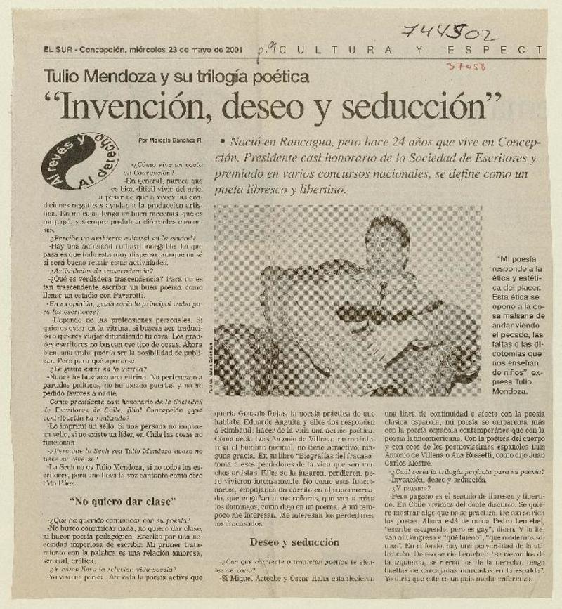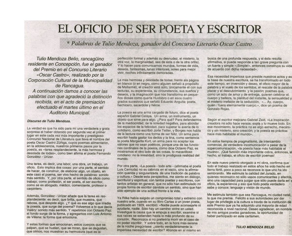 Autores chilenos - Mendoza Belio, Tulio Hernán - Entrevista - En tu hermosa materia