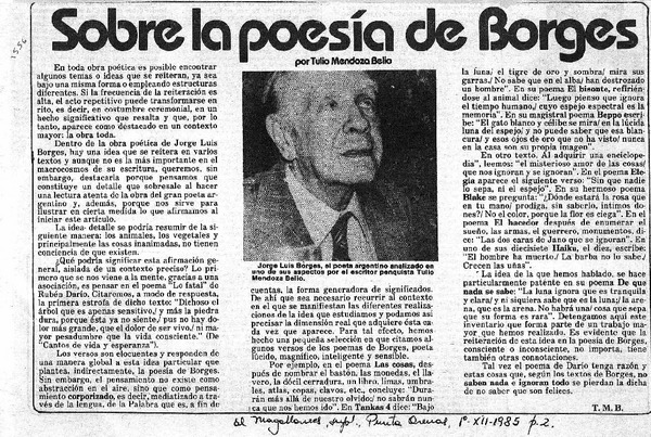 Sobre la poesía de Borges [artículo] Tulio Mendoza Bello.