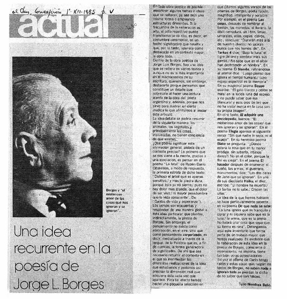 Una Idea recurrente en la poesía de Jorge L. Borges [artículo] Tulio Mendoza Belio.