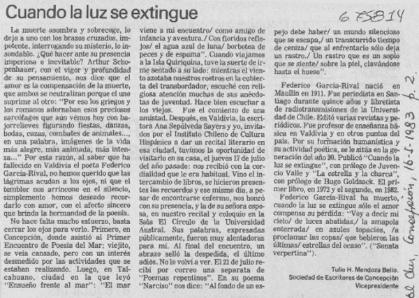 Cuando la luz se extingue [artículo] Tulio H. Mendoza Belio.