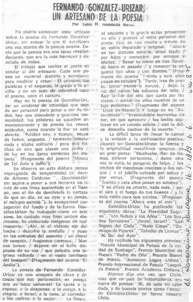 Fernando González Urízar, un artesano de la poesía [artículo] Tulio H. Mendoza Belio.
