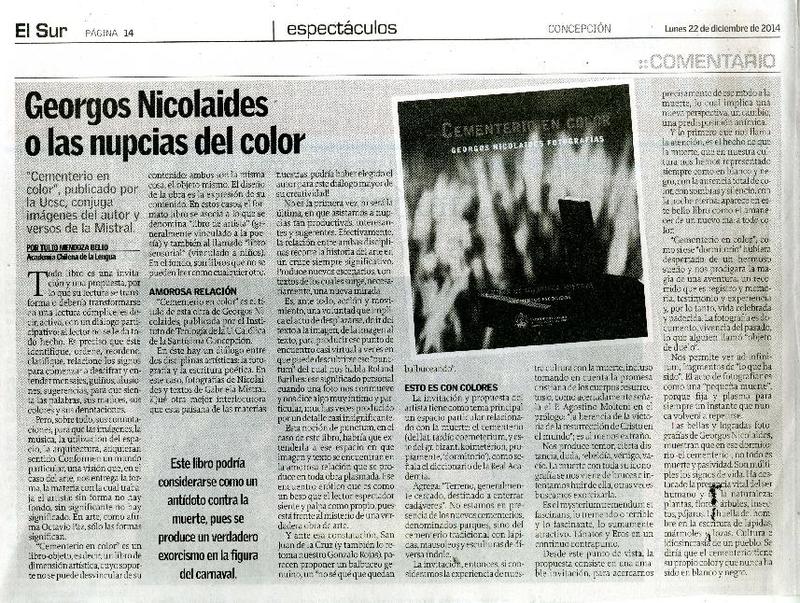 Georgos Nicolaides o las nupcias del color [artículo] Tulio Mendoza Belio
