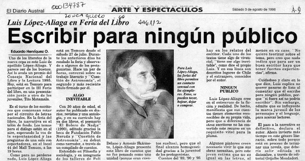 Escribir para ningún público [artículo] Eduardo Henríquez O.