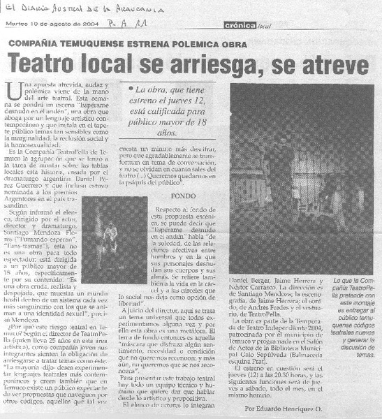 Teatro local se arriesga, se atreve [artículo] Eduardo Henríquez O.