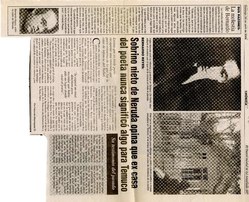 Sobrino nieto de Neruda opina que ex casa del poeta nunca significó algo para Temuco [artículo]Eduardo Henríquez O.