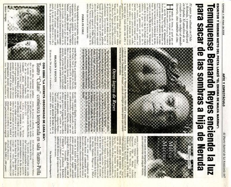 Temuquense Bernardo Reyes enciende la luz para sacar de las sombras a hija de Neruda [artículo]Eduardo Henríquez O.