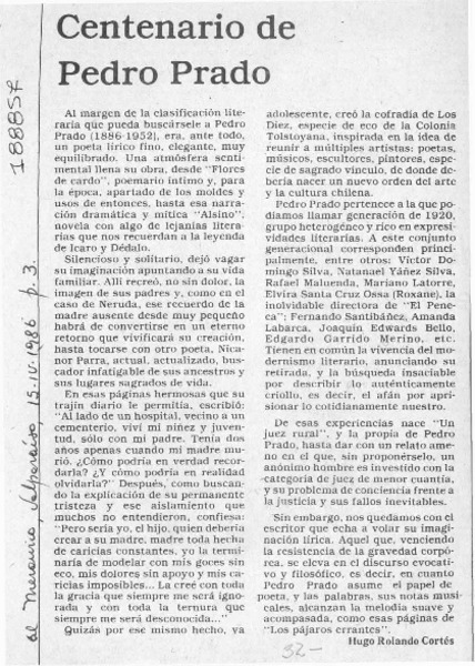 Centenario de Pedro Prado [artículo] Hugo Rolando Cortés.