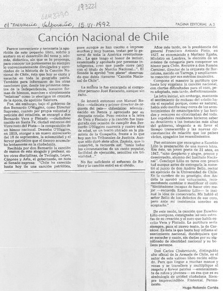 Canción Nacional de Chile [artículo] Hugo Rolando Cortés.