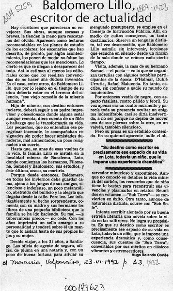 Baldomero Lillo, escritor de actualidad [artículo] Hugo Rolando Cortés.