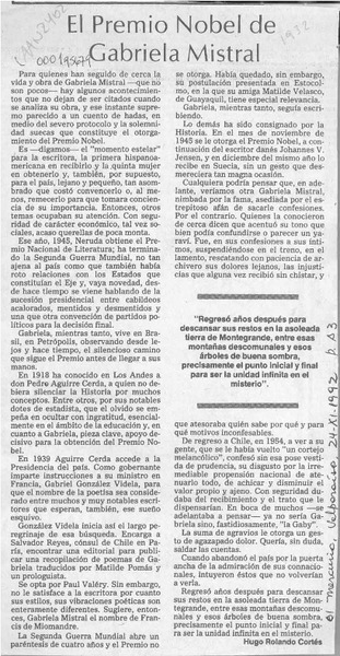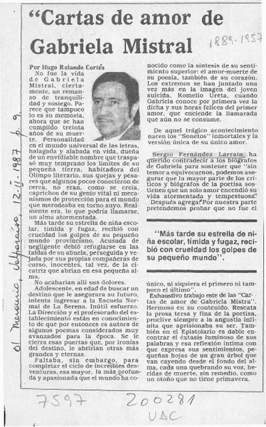 A propósito de Gabriela Mistral [artículo] Hugo Rolando Cortés.