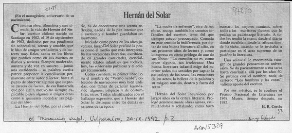 "El Hombre del reloj" [artículo] H. R. Cortés.