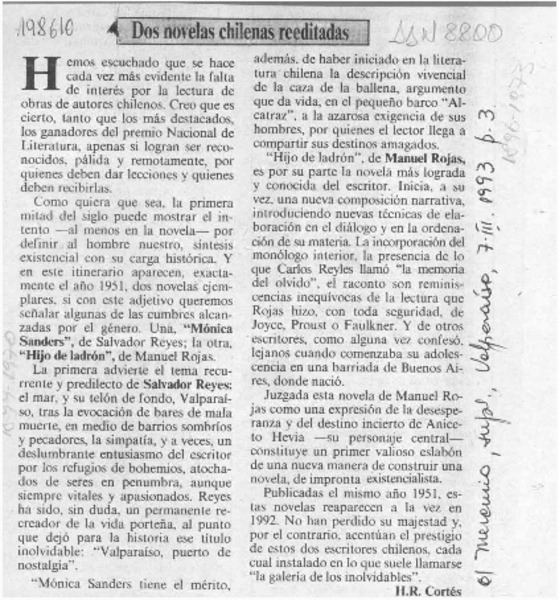 Recordando a Salvador Reyes [artículo] Hugo Rolando Cortés.
