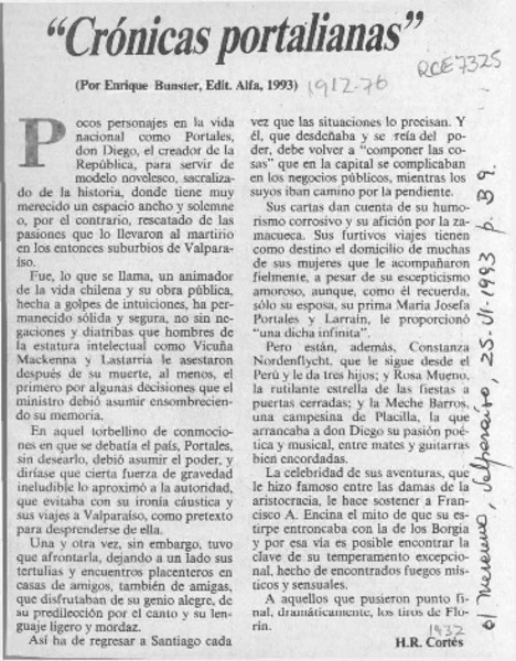 "Crónicas portalianas" [artículo] H. R. Cortés.