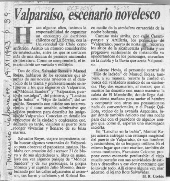 Valparaíso, escenario novelesco [artículo] H. R. Cortés.