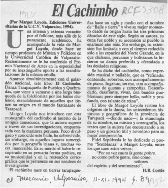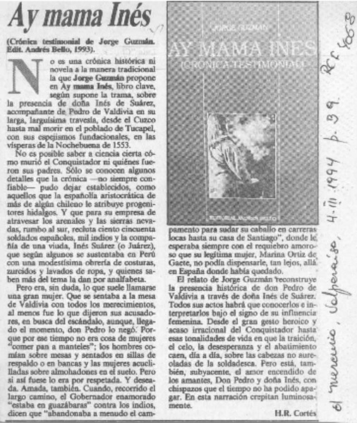 "Cartas de relación de la conquista de Chile" [artículo] H. R. Cortés.