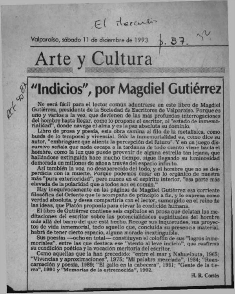 "Indicios", por Magdiel Gutiérrez [artículo] H. R. Cortés.