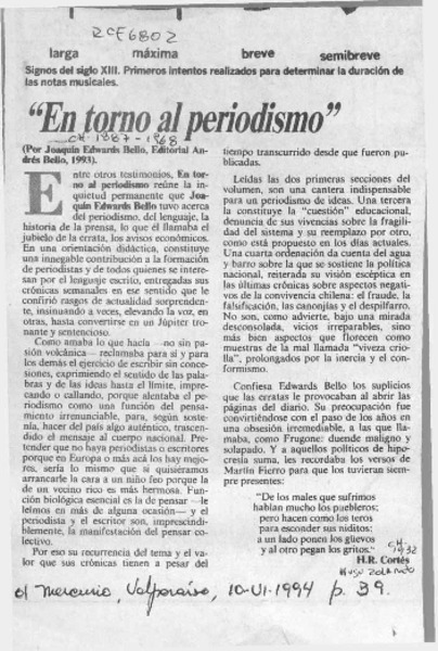"En torno al periodismo" [artículo] H. R. Cortés.