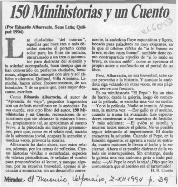 150 Minihistorias y un cuento [artículo] H. R. Cortés.