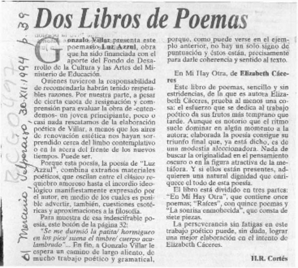 Cuadernos de poesía [artículo] H. R. Cortés.