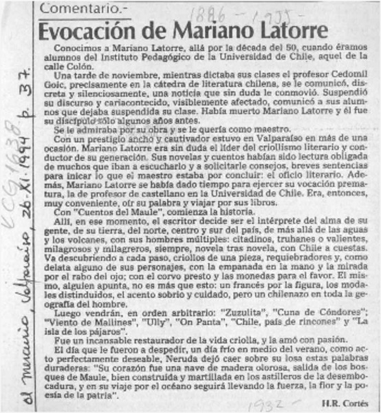 "Crónica de La Serena" [artículo] H. R. Cortés.