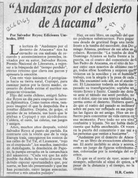 Andanzas por el desierto de Atacama", de S. Reyes [artículo] Hugo Rolando Cortés.