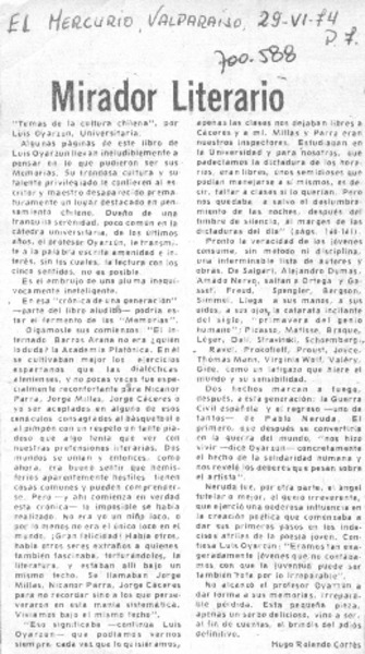 Testimonios y documentos de la literatura chilena (1842-1975) [artículo] Hugo Rolando Cortés.