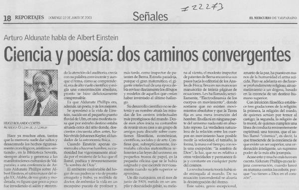 Ciencia y poesís, dos caminos convergentes [artículo] Hugo Rolando Cortés.