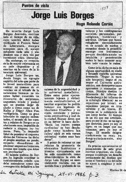 Borges, ese hombre de papel [artículo] Hugo Rolando Cortés.
