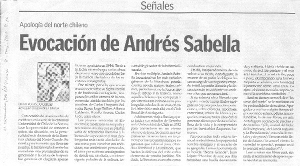 Apología del norte chileno : evocación de Andrés Sabella [artículo] Hugo Rolando Cortés.