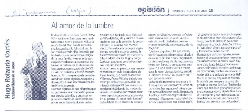 Al amor de la lumbre [artículo] Hugo Rolando Cortés.