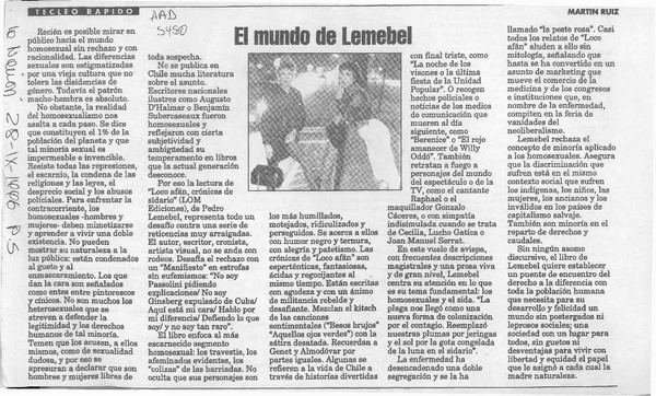 El mundo de Lemebel [artículo] Martín Ruiz.