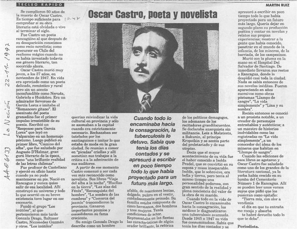 Oscar Castro, poeta y novelista [artículo] Martín Ruiz.