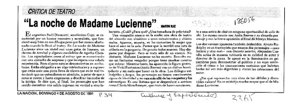 "La noche de madame Lucienne" [artículo] Martín Ruiz.