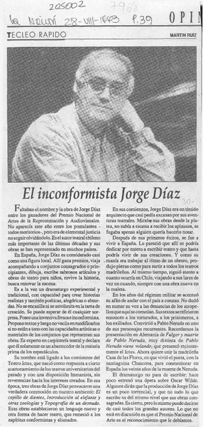 El inconformista Jorge Díaz [artículo] Martín Ruiz.