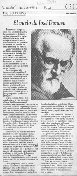 El vuelo de José Donoso [artículo] Martín Ruiz.