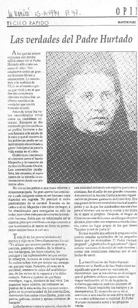 Las verdades del Padre Hurtado [artículo] Martín Ruiz.