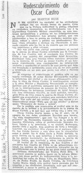 Redescubrimiento de Oscar Castro [artículo] Martín Ruíz.