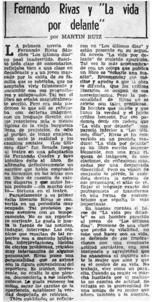 Fernando Rivas y "La vida por delante" [artículo] Martín Ruiz.