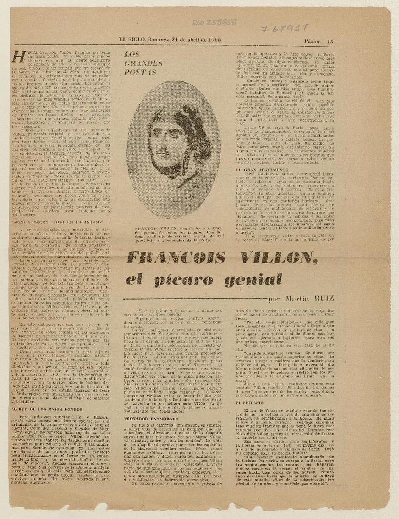 Francois Villon, el pícaro genial [artículo] Martín Ruiz.