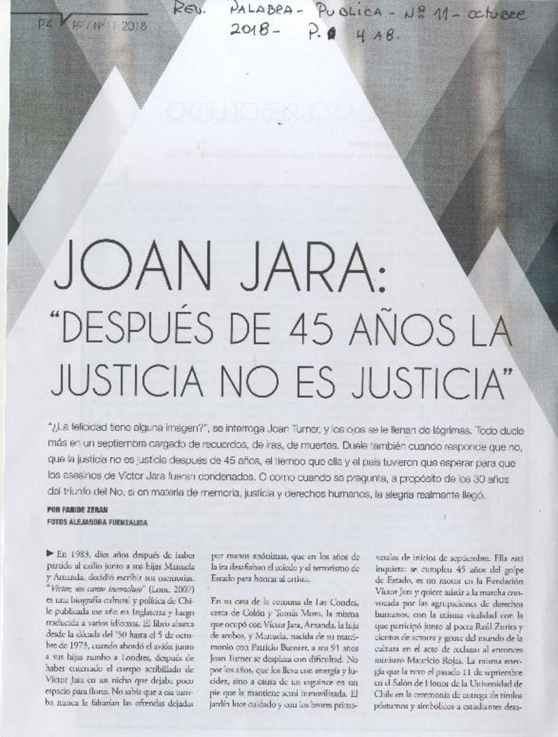 Joan Jara : "después de 45 años la justicia no es justicia" : [entrevista] [artículo] : Faride Zerán.