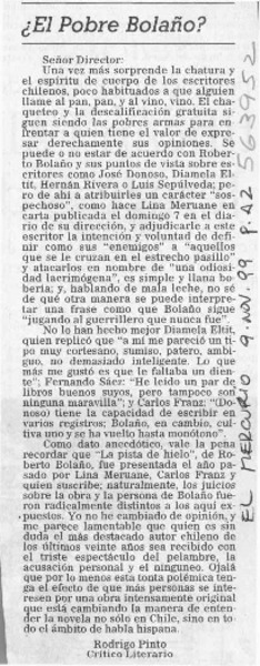 Bolaño por sí mismo [artículo] Rodrigo Pinto.