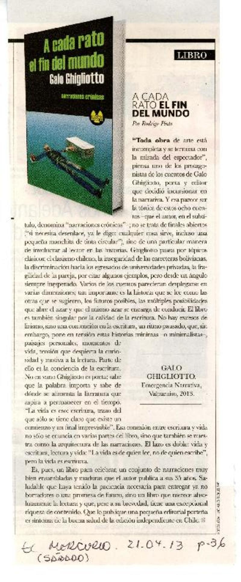 A cada rato el fin del mundo [artículo] Rodrigo Pinto.