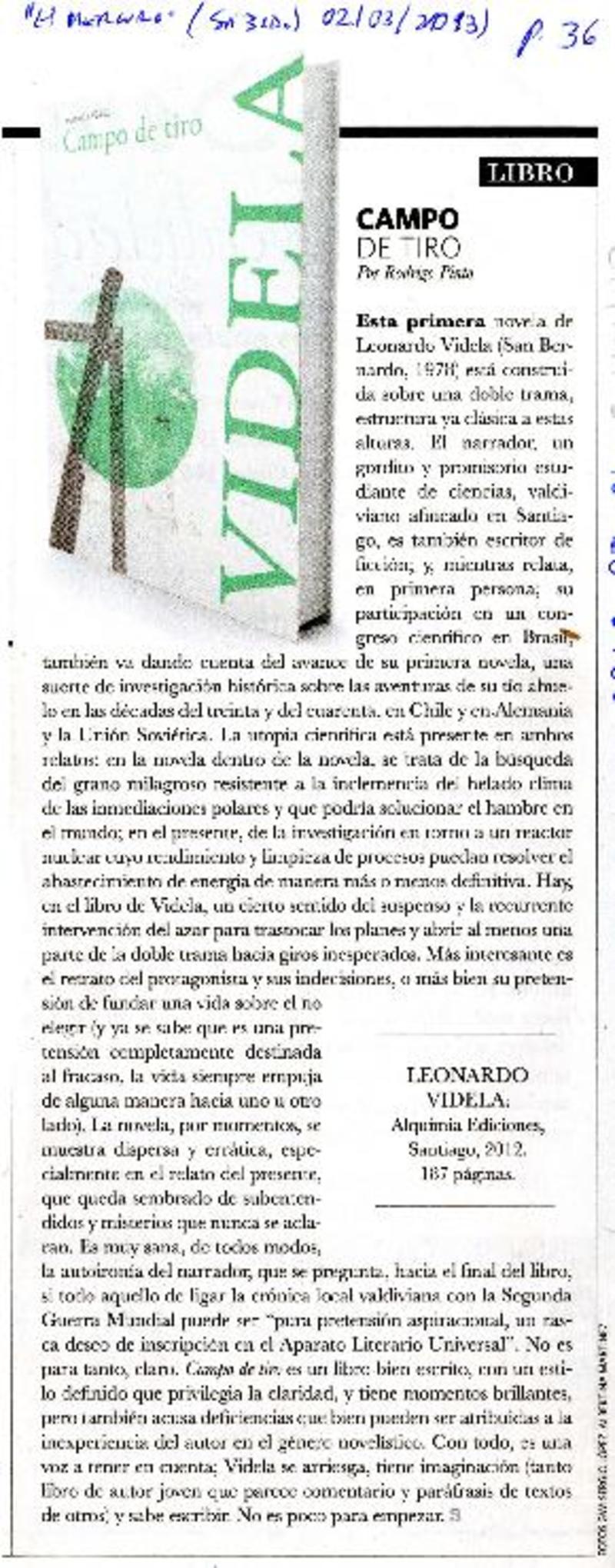 Campo de tiro [artículo] Rodrigo Pinto.